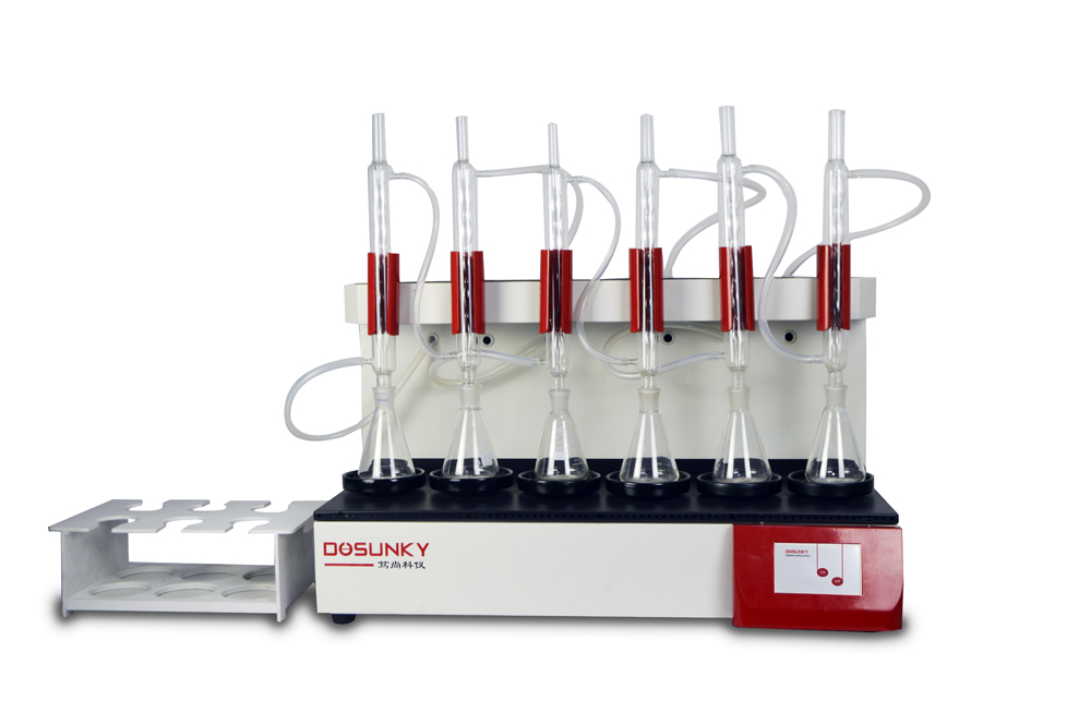 传统的实验装置需要人工搭建,费时费力。一般每次只能做一个样品实验,并且需要值守才能作业。我公司FDS06粗脂肪回流仪实现自行设定时间,自动控温,自动计时,到达设定时间可以自动切断电源并可以自动报警提示实验完成,每一路单独工作互不干扰,一次最多可以处理六个样品,提高工作效率,实现了实验工作的自动化智能化。功能实用,操作简便。主机配有五寸彩色液晶触摸屏,良好的人机界面设计。自动恒温,控温精度±1℃。主要适用于粗脂肪回流实验,更换玻璃配置后也可以用来测定水中COD含量,中药回流实验等